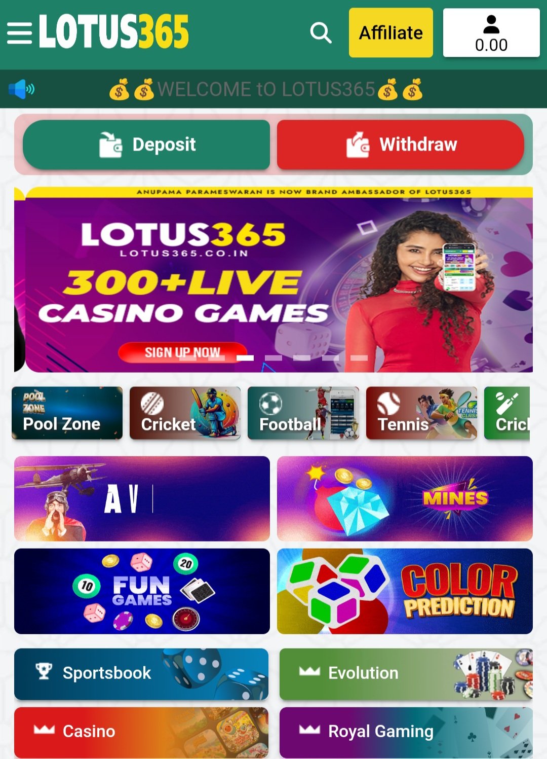 LOTUS365 in this app you get to play many games which you can downlod and get free bonus and play game